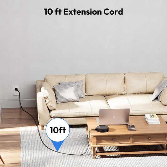 10Ft Long Extension Cord Power Strip with USB Ports, Flat Plug Power Strip with 3 Outlet 4 USB(1 USB C), Wall Mount Charging Station for Home Office, Dorm Room, Travel, ETL Listed, Black