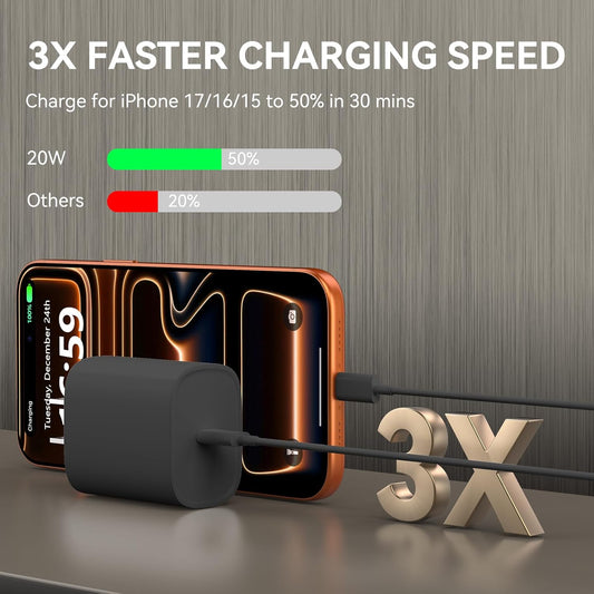 Phone 17 16 15 Pro Max Charger Fast Charging, 10 FT Long USB C Charger Cord with 20W Type C Fast Phone Charging Block for Phone 17/17 Pro/17 Pro Max/Air, for Phone 16 15 Pro Max Plus, Ipad, Android